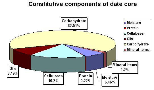 Upon being milled corn of date can be mixed with other corns like maize,  grain and Lucerne to feed animals. The main constitutive components of date are  as follows: